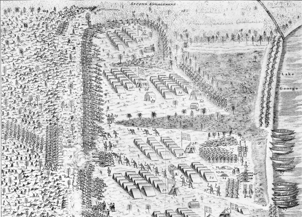 What happened on 8 September 1755? This is the date of the Battle of Lake George, the first big encounter on the New York frontier between British and French forces. Fifteen hundred Massachusetts and Connecticut irregulars (not regular troops from Britain’s standing army), plus two hundred Mohawk allies, had camped on the banks of Lake George in upstate New York, a staging point for a planned attack on the French position at the other end of the lake.
